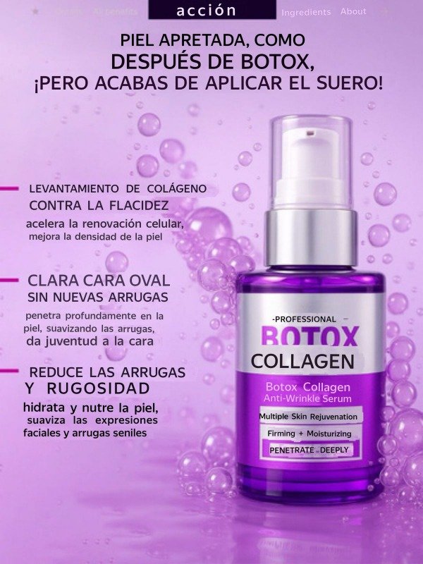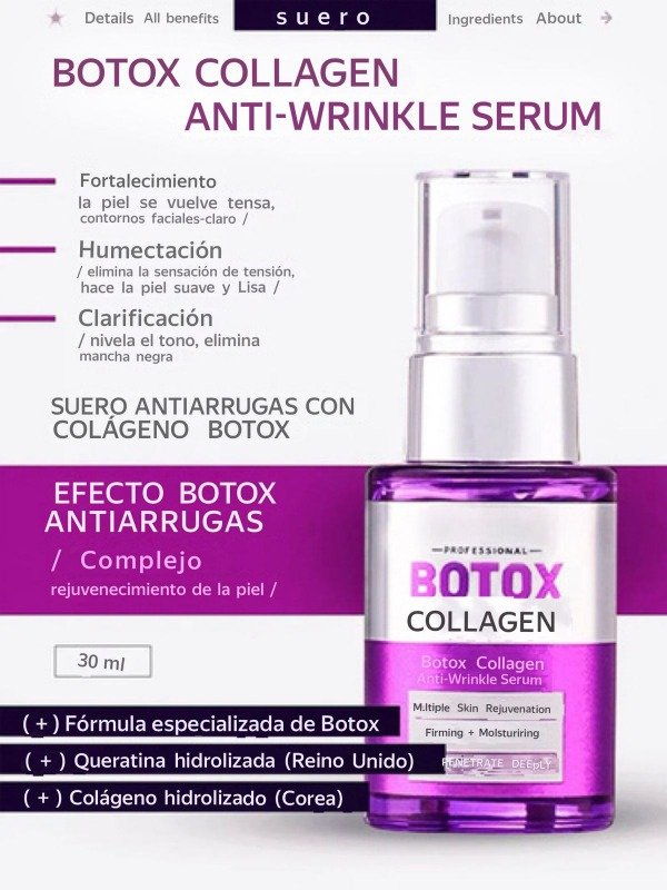👉 No contiene toxina botulínica inyectable. Producto cosmético de uso tópico.