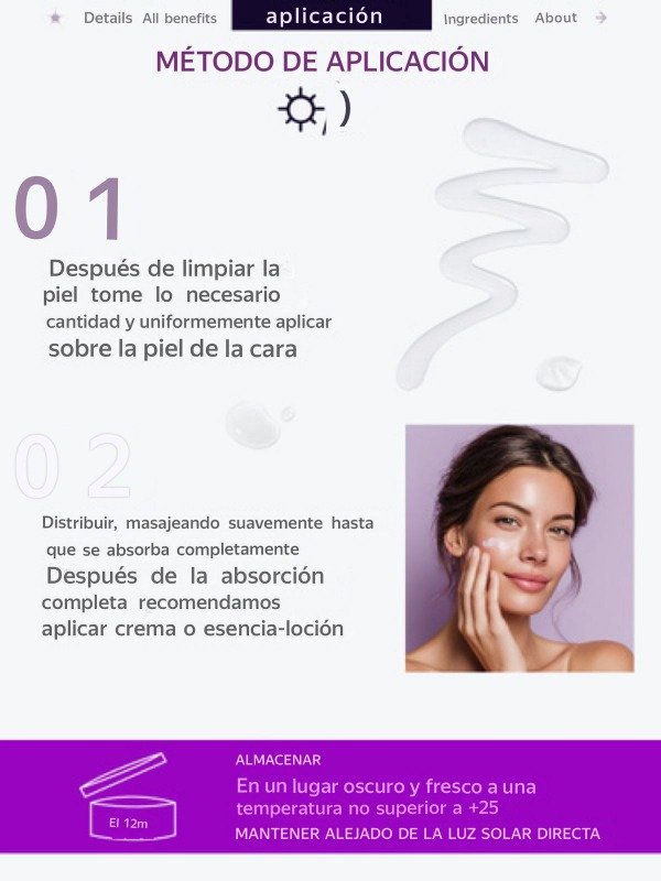 Indicado para rutinas diarias y también para uso profesional en gabinete estético, como complemento en tratamientos de rejuvenecimiento y firmeza.