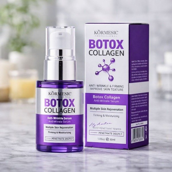 El Botox Collagen Anti-Wrinkle Serum de KÖRMESIC Professional es un suero facial formulado para mejorar la textura de la piel, aportar firmeza y brindar un efecto tensor visible. Su acción anti-edad ayuda a suavizar líneas de expresión y arrugas, mejorando el aspecto general del rostro con una hidratación profunda y duradera.