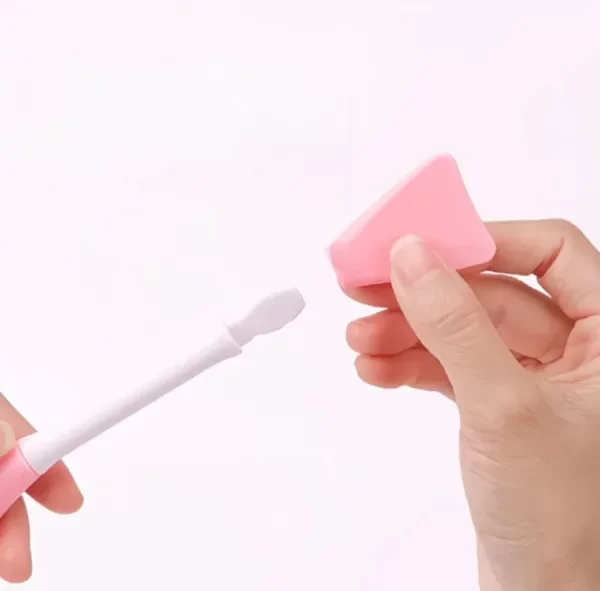 Limpia/Masajea: Usa el extremo con cerdas suaves para masajear la piel, ayudar a remover la mascarilla o limpiar profundamente los poros con tu jabón facial favorito.