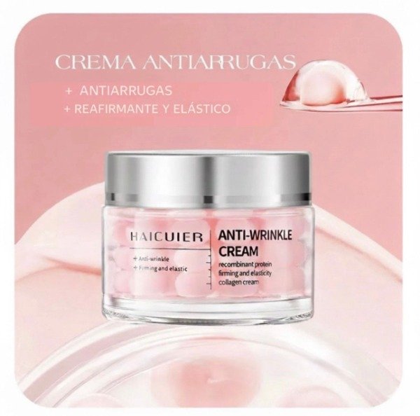La Anti Wrinkle Cream de HAICUER es una crema facial formulada para mejorar la apariencia de líneas de expresión, aportar firmeza y mantener la piel intensamente hidratada. Su presentación con microcápsulas/perlas permite una liberación progresiva de los activos cosméticos, dejando la piel más suave, luminosa y revitalizada.