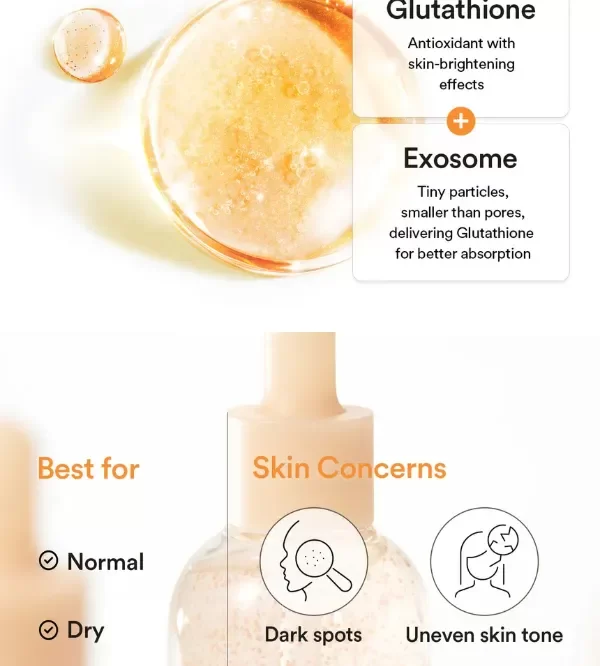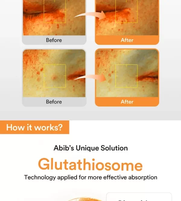 Formulado con la exclusiva tecnología Glutathiosome™ de Abib, que utiliza microcápsulas para una absorción profunda y efectiva de los ingredientes activos: